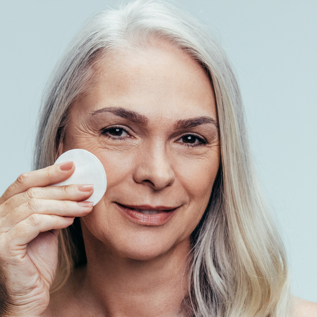 Cleansing is even more important for mature skin, because clean skin allows better absorption of topical nutrients that help to boost the hydration of skin.